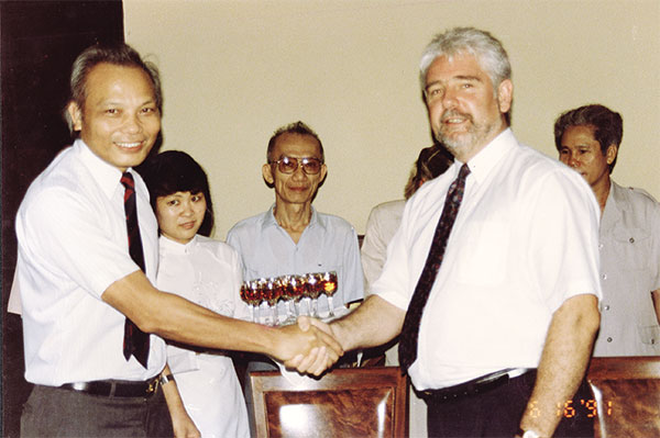 | The historic handshake between Prof. Nguyen Mai (left), Vietnam Investment Review’s first editor-in-chief, and an executive of Australian-invested VIR Ltd. gave birth to the newspaper 26 years ago. The business co-operation contract (BCC) signing was witnessed by Minister Vo Dong Giang (centre), who made great contributions to the establishment and direction of VIR’s development in its first years. In May 1998, due to the Asian financial crisis, the Australian partner pulled out of the BCC which means the Vietnamese side under the Ministry of Planning and Investment took over the entire business and production activities of VIR. |