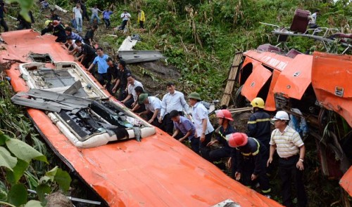 The country’s most serious accident occurred on Monday evening, when a sleeper bus carrying 53 people fell into a 200-meter valley after colliding with a 4-seater car in the northern province of Lao Cai.