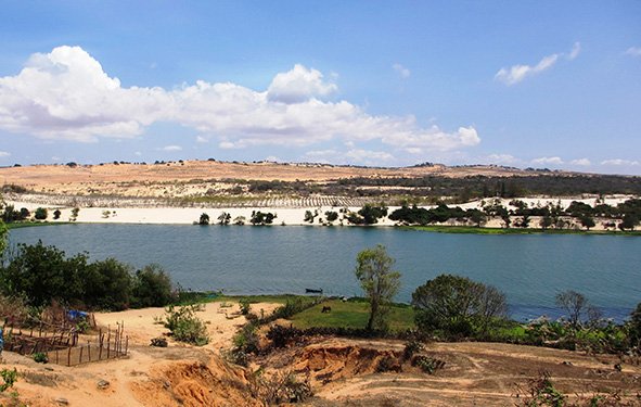 | A view of Bau Trang lake in the middle of sandy land |