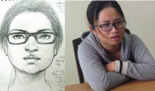 It took only 20 minutes for Phan Vu Linh, a lecturer at HCMC University of Fine Arts, to piece together memories of the kidnapped victim’s relatives to produce a picture of the suspect. He drew a sketch of a young woman with thick lips, big eyes with glasses, and a round face.