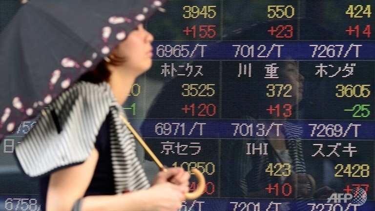 A woman walks past an electronic prices board in Tokyo. Asian markets fell on Tuesday following another weak lead