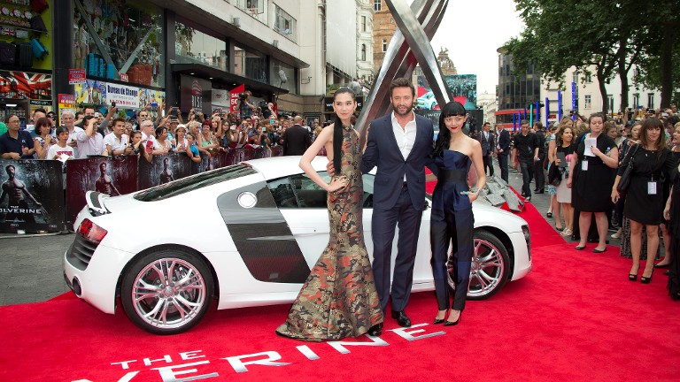 Actors (from L to R) Tao Okamoto, Hugh Jackman and Rila Fukushima arrive for the UK Premiere of "The Wolverine", at a central London cinema in Leicester Square on July 16, 2013. (AP/Invision/Joel Ryan) |