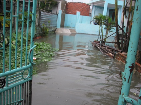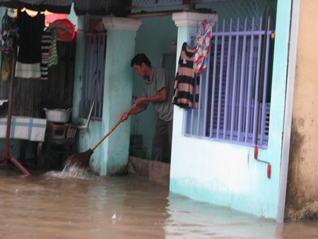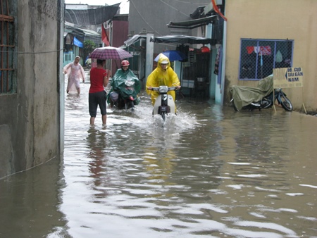 In Danang Province, rain started on September 17 and became heavier the next day. At some places, streets are submerged under 30-40 cm of water and the flood is forecast to sweep through the province this afternoon.
