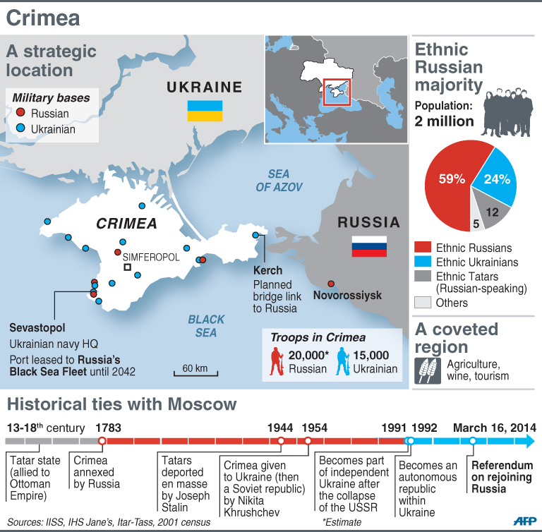 Crimea has emerged as the epicentre of a crisis that erupted when the splintered ex-Soviet nation's Russian-leaning president Viktor Yanukovych was ousted last months after months of bloody pro-EU demonstrations in Kiev.