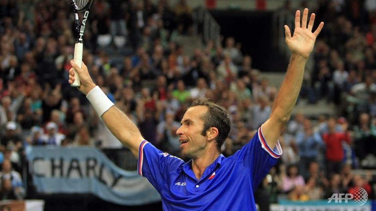 ![]() Czech Republic's Radek Stepanek celebrates after winning the first rubber of the Davis Cup semi-finals tennis match Argentina vs Czech Republic in Prague, September 13, 2013. (AFP/Radek Mica) |