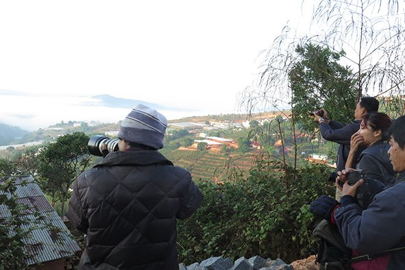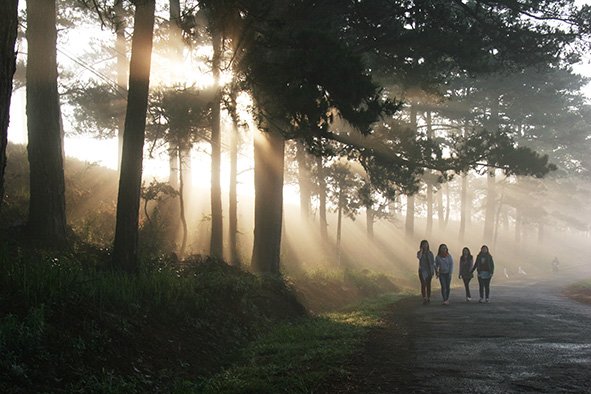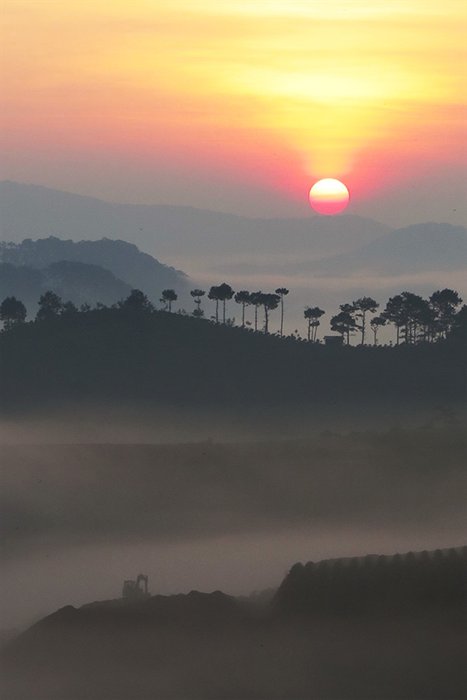 An early morning at Trai Mat and Cau Dat is different from any other places. There we can see fog covering the hills, greet the first light of the day through the thick fog, and chase after the sunshine which flickers in the pine forest.