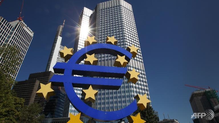 File photo shows the Euro logo displayed in front of the European Central Bank (ECB) building in Frankfurt, Germany.
