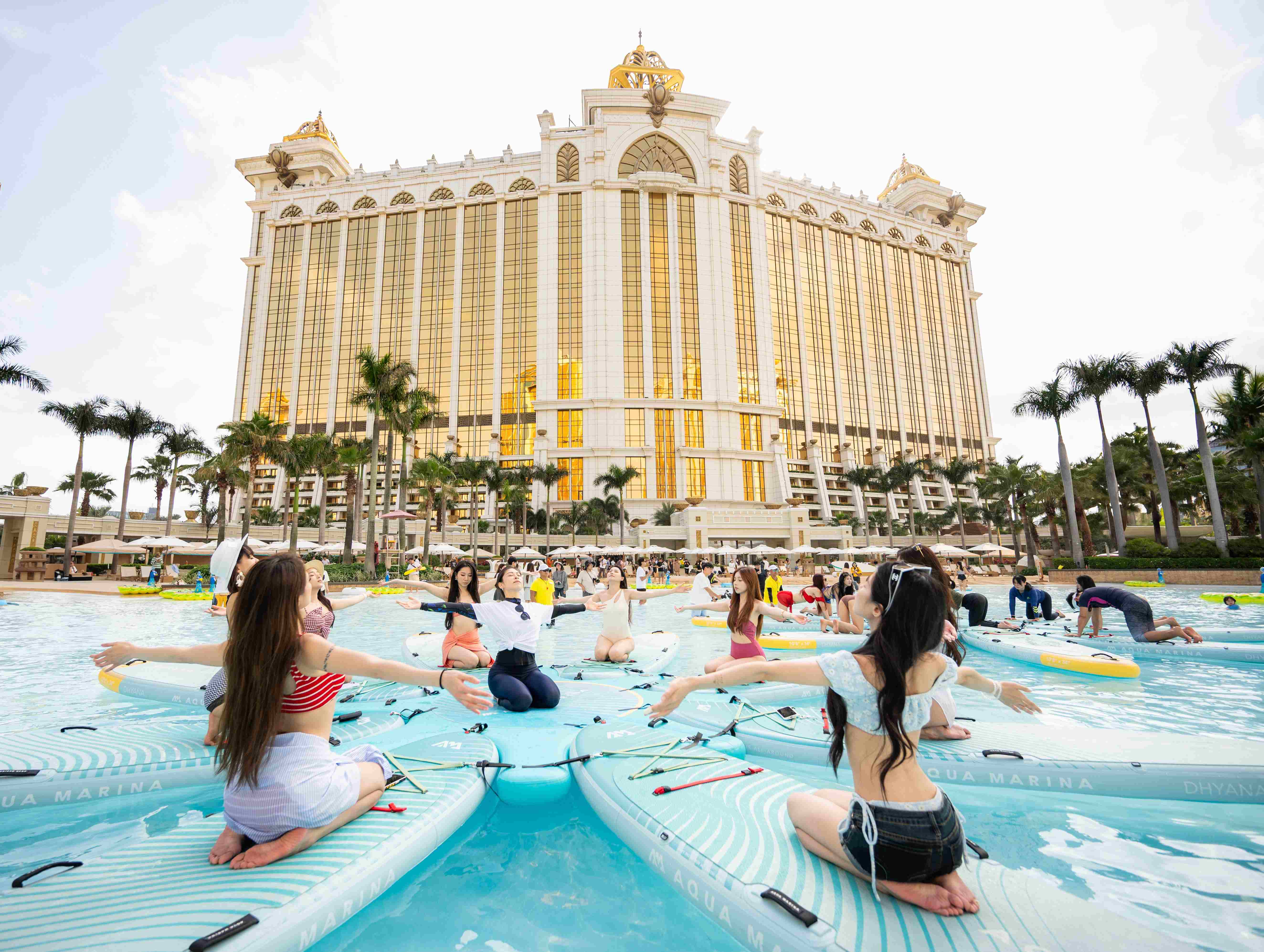 To elevate this unparalleled experiential getaway, from May 10 - June 7, weekend-exclusive packages (priced at MOP 468) grant access to 'Glow Yoga Nights' or a Stand-Up Paddleboard (SUP) Yoga Session, paired with all-day access to the Grand Resort Deck and a MOP 200 dining voucher. Neon Yoga Night is led by professional artists who adorn participants with body art, transforming yoga poses into a luminous spectacle under blacklight. SUP Yoga Sessions, guided by expert instructors, practice balance and mindfulness atop floating platforms in the wave pool. Surprise moments of wellness and fun define this summer season at the world's largest rooftop wave pool, perfect for photo-worthy moments for the endless summer.