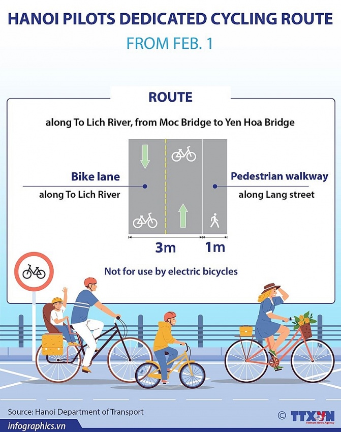| Hanoi piloting dedicated cycling route from Feb. 1, source:VNA |