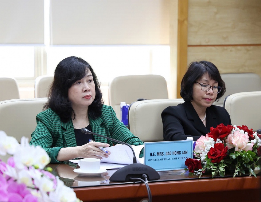 | Minister of Health Dao Hong Lan delivered remarks during a meeting with Mr. Burak Pekmezci – Country Lead of Sanofi-Aventis Vietnam Co., Ltd. Photo: The Ministry of Health |
