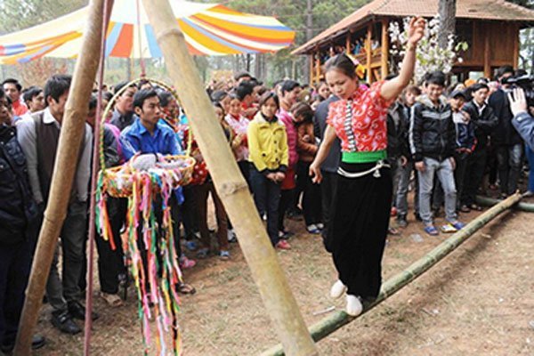 The game requires players to walk on a bamboo stick which is linked by a rope between a high ground and a pole