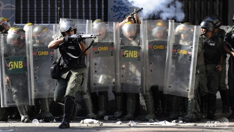 A National Guard member shoots tear gas during an opposition demontration against the government of Venezuelan President Nicolas Maduro, in Caracas. (AFP/Leo Ramirez)
