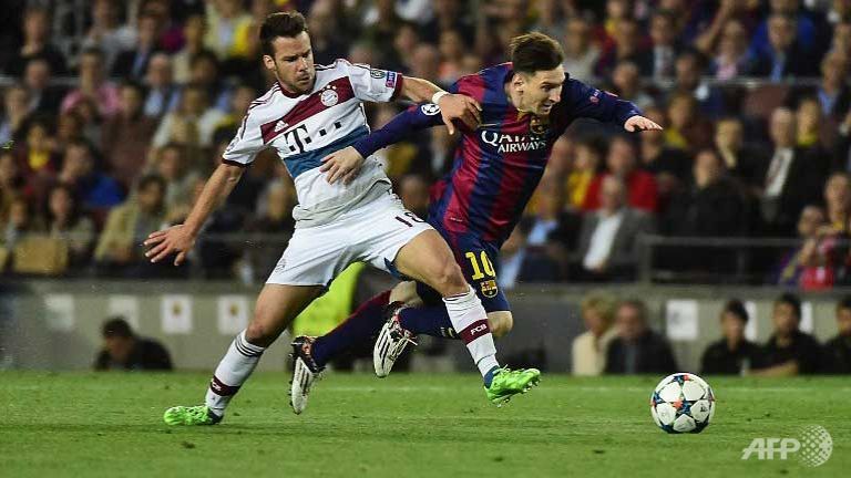 ![]() Bayern Munich's Juan Bernat (L) vies with Barcelona's Lionel Messi during the UEFA Champions League semi-final first leg football match at the Camp Nou stadium in Barcelona. (AFP/PIERRE-PHILIPPE MARCOU) |