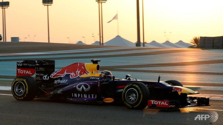 Red Bull's German driver Sebastian Vettel leads after the start of the Abu Dhabi Formula One Grand Prix at the Yas Marina circuit in Abu Dhabi. (AFP/Tom Gandolfini)
