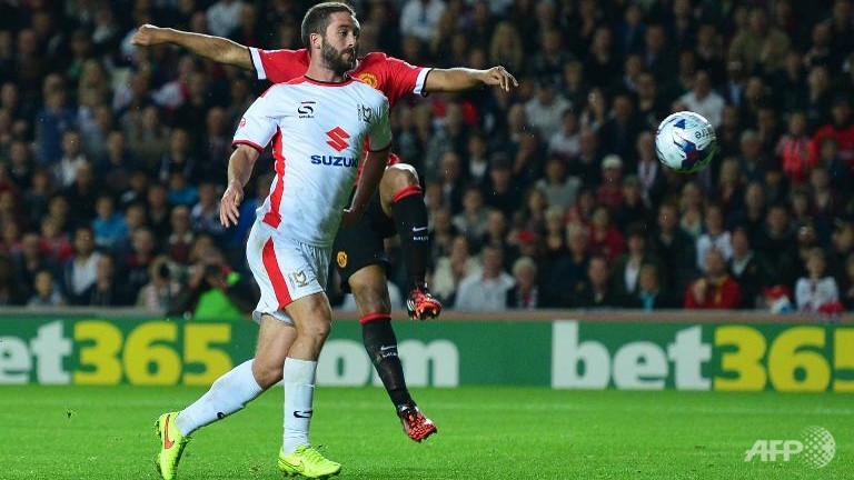 United had announced the signing of Angel di Maria from Real Madrid in a British-record £59.7 million (S$122 million, US$98 million) deal shortly before kick-off, but they were brought down to earth with a painful bump as a second-string team fell apart at Stadium MK.