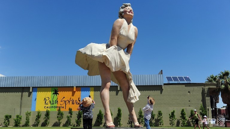 People visit and photograph the "Forever Marilyn" statue of actress Marilyn Monroe in Palm Springs, California.