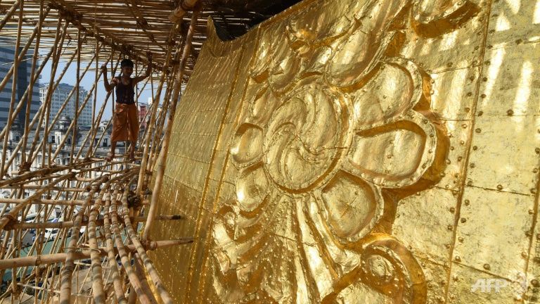 YANGON: Teetering on bamboo scaffolding, expert craftsmen are busy attaching blocks of gold to a Buddhist pagoda in downtown Yangon, burnishing one of the city's major landmarks and racking up spiritual credit for devotees.
