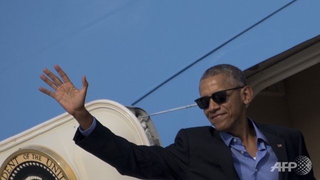 | US President Barack Obama waves from Air Force One. (Photo: AFP) |