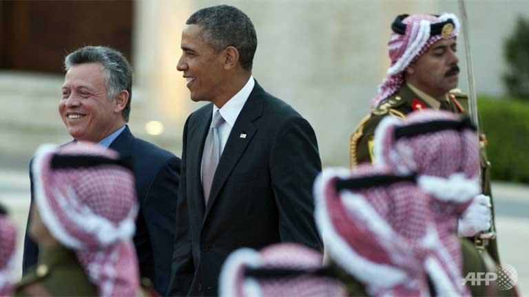 Obama headed immediately for talks with King Abdullah II, a key US ally, on the agony of Syria's conflict in Jordan, which is hosting more than 450,000 refugees from the war-torn country.