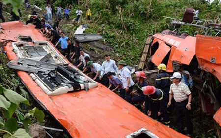 The bus, with 53 people on board, including the driver, plunged into a 200-metre ravine at about 7pm in Tong Sanh Village, Bat Xat District.