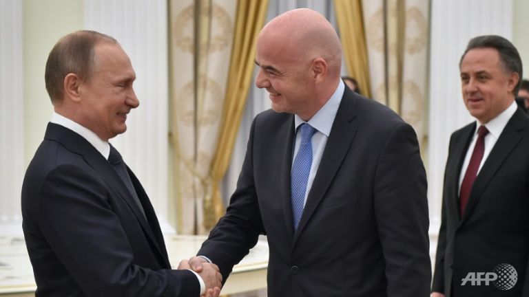 MOSCOW: FIFA president Gianni Infantino met with President Vladimir Putin on Wednesday (Apr 20), wrapping up a two-day visit to Russia in which he gave an overall positive assessment of the state of preparations for the 2018 World Cup.