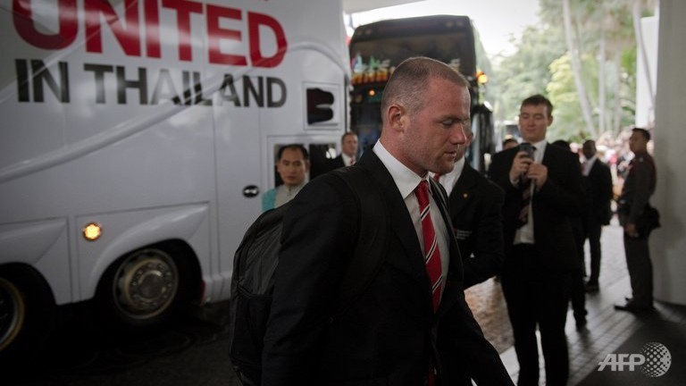 Manchester United striker Wayne Rooney arrives at a Bangkok hotel in Thailand. (AFP/Nicolas Asfouri)