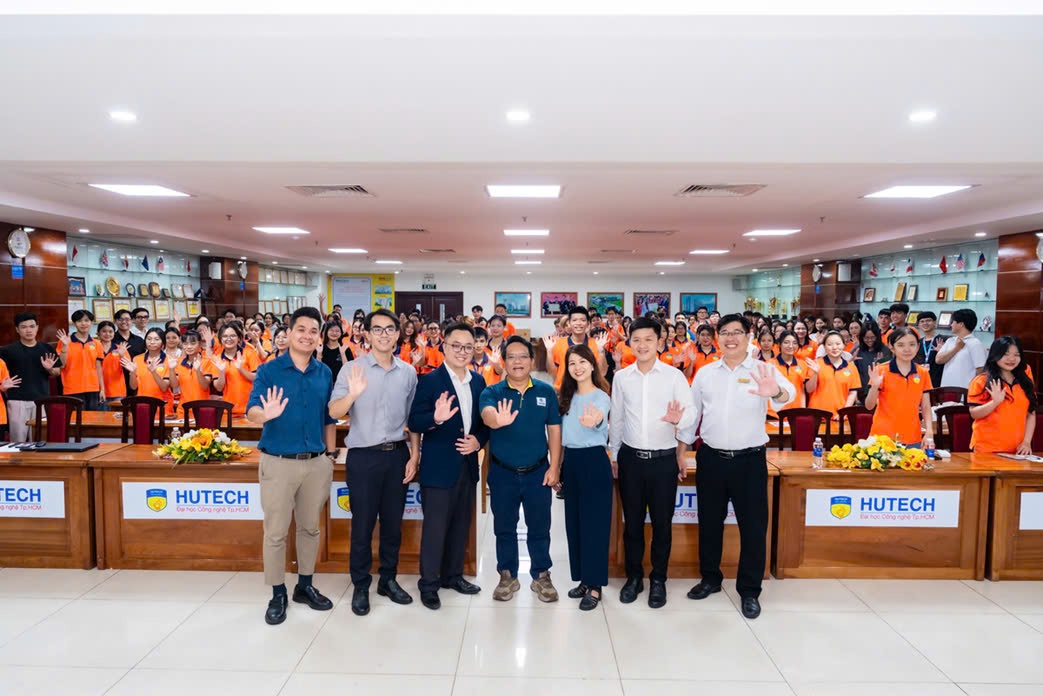 | TMIV team with teachers and students at HUTECH University in the sharing session |