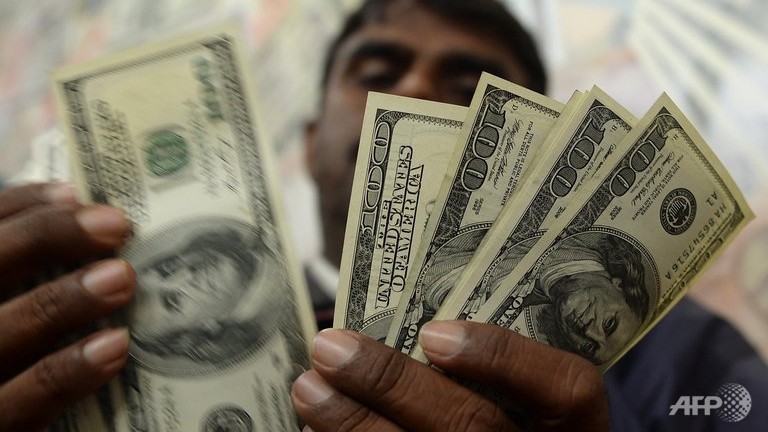 An Indian man counts US dollar notes at a currency exchange shop in Mumbai. (AFP/Punit Paranjpe)