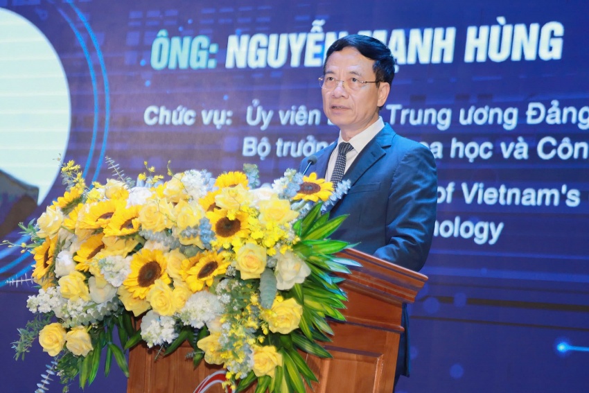 | Minister of Science and Technology Nguyen Manh Hung made speech at the event. Photo: Bich Thuy |