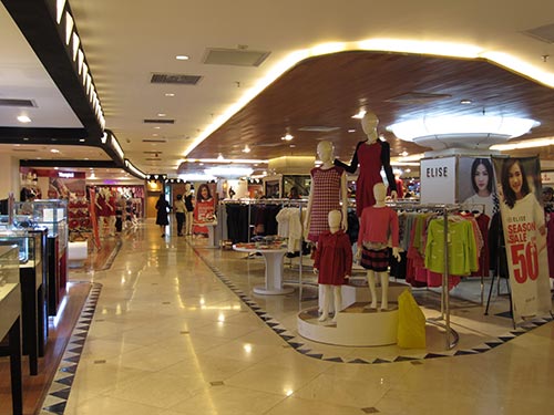 Trang Tien Plaza is quite quiet from the lower floors selling luxury goods to the higher ones selling more affordable goods