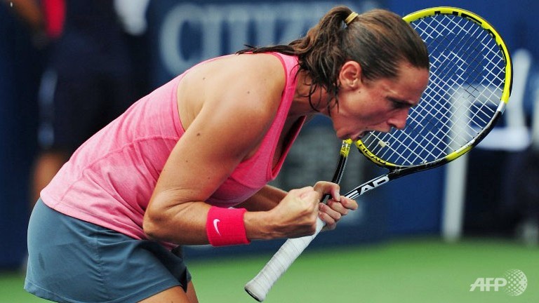 Italian 10th seed Roberta Vinci beat compatriot and qualifier Camila Giorgi to reach the US Open quarter-finals. Vinci clinched a 6-4, 6-2 win over the world number 136, who had stunned former world number one Caroline Wozniacki in the third round. (AFP PHOTO/Stan HONDA) |