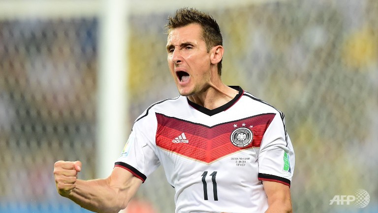 BERLIN: German striker Miroslav Klose, the all-time World Cup top scorer, announced his retirement from international football on Monday (Aug 11). The 36-year-old leaves the German national team as a World Cup winner after helping Joachim Loew's side to their first global crown since 1990 when they defeated Argentina 1-0 last month in the Rio-hosted final.