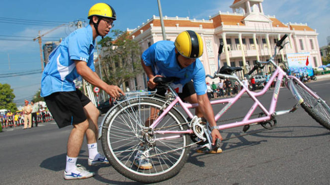 A foreigner is seen partaking in a tandem bike race held in Nha Trang City in the south-central province of Khanh Hoa in April 2013 in thisTuoi Tre file photo.